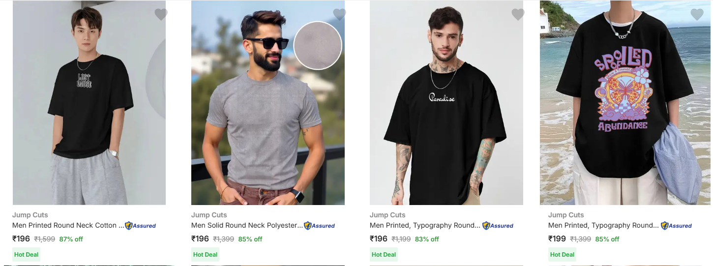 Jump Cuts Men's T-Shirts upto 87% Discount is available on Flipkart.