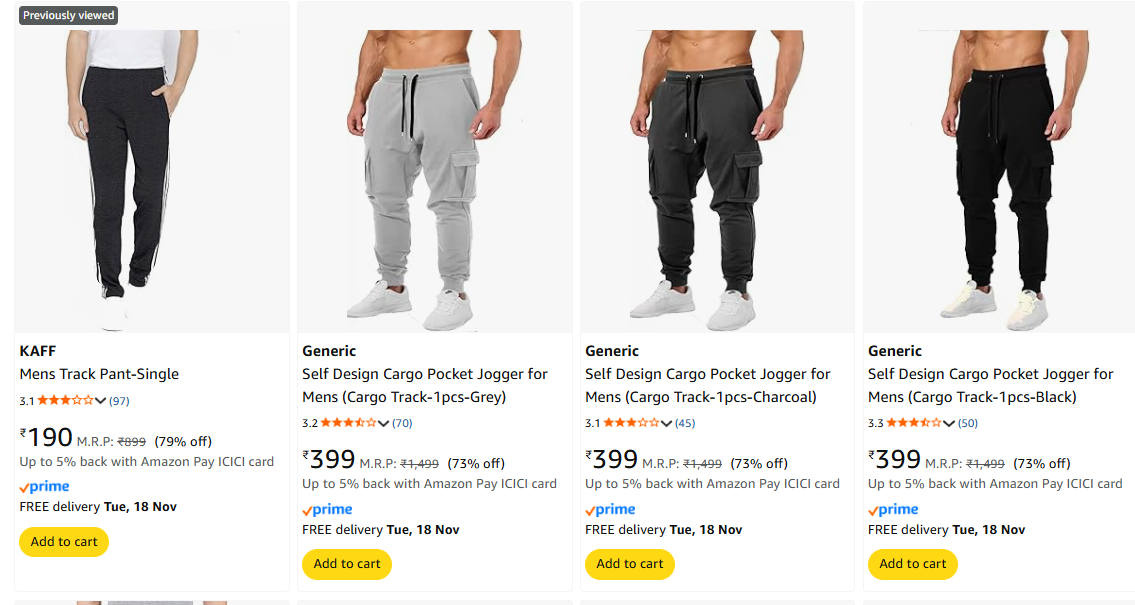 KAFF Men's Track Pant upto 79% Discount | Starting at ₹190 is available on Amazon.