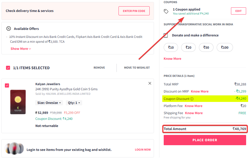 Kalyan Jewellers 24K (999) Purity Ayodhya Gold Coin 5 Gms.