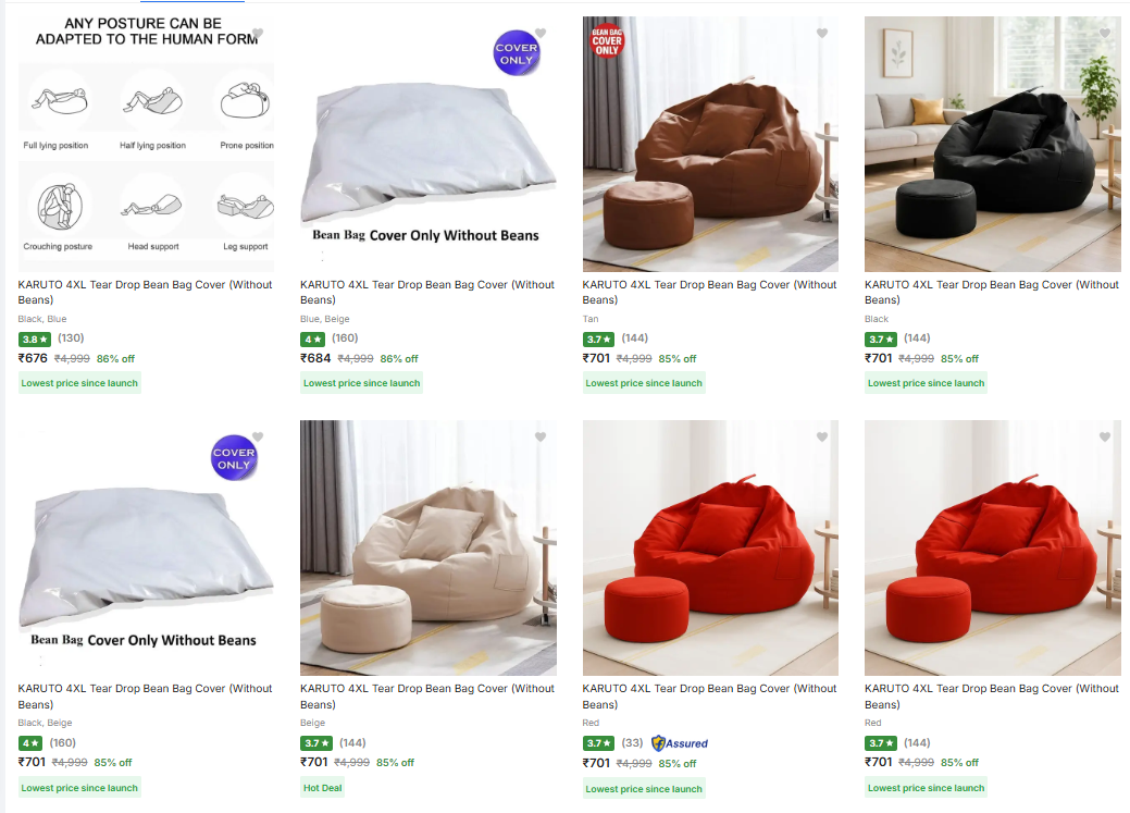 Karuto Bean Bag Covers @ Starting ₹676, Available on Flipkart.