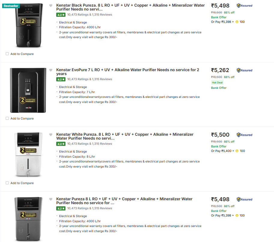 Kenstar Pureza 8L RO+UF+UV Copper Alkaline Water Purifier (Black) Starting At ₹5262.