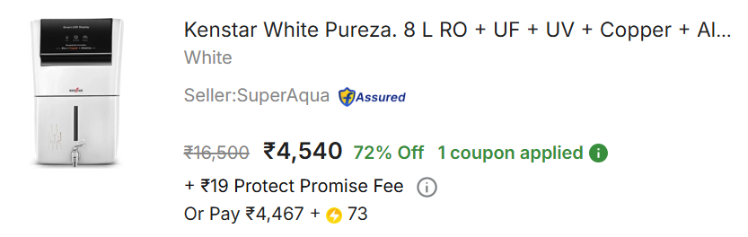 Kenstar White Pureza. 8 L RO + UF + UV + Copper + Alkaline + Mineralizer Water Purifier Needs no service for 2 years (White).