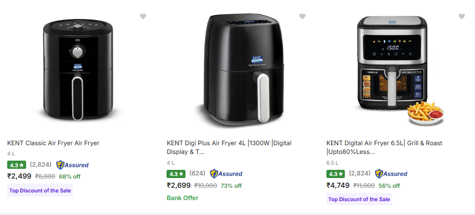 KENT Digi Plus Air Fryer 4L |1300W | Digital Display & Touch Control Panel | Black Air Fryer (4 L)