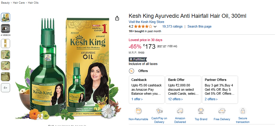 Kesh King Ayurvedic Anti Hairfall Hair Oil, 300ml.