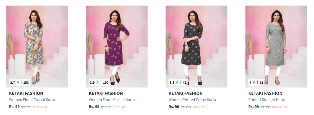 KETAKI FASHION Women Kurta Starting at ₹99 available on Myntra