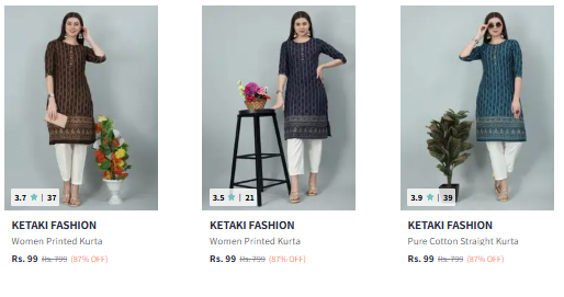 Ketaki Fashion Women's Kurta Starting @ ₹99 available online in India at an offer price of ₹99 on Myntra. Discounted Price: ₹99. This deal was updated by @ruchika on 11th October, 2025 at 2:17 PM.