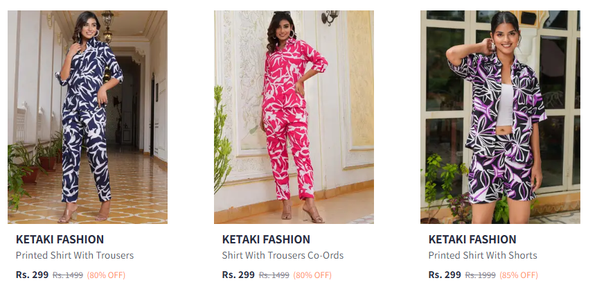 Ketaki Fashion Women's Co ord sets Upto 85% Discount | Starting @ ₹299