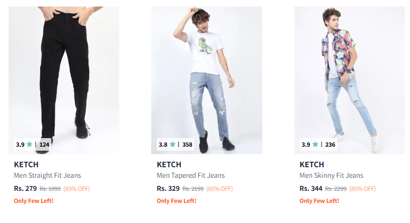 Ketch Men's Jeans upto 85% Discount is available on Myntra.