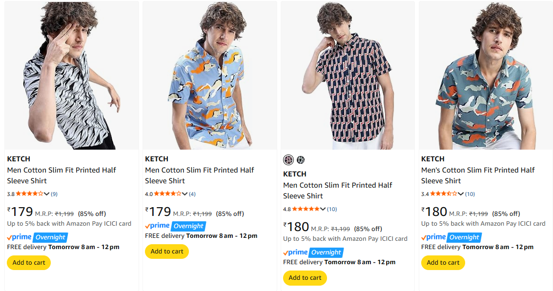 Ketch Men's Shirts starting @ ₹179 is available on Amazon.