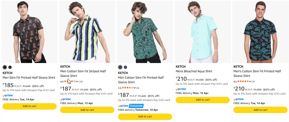 Ketch mens shirts upto 85% discunt on amazon