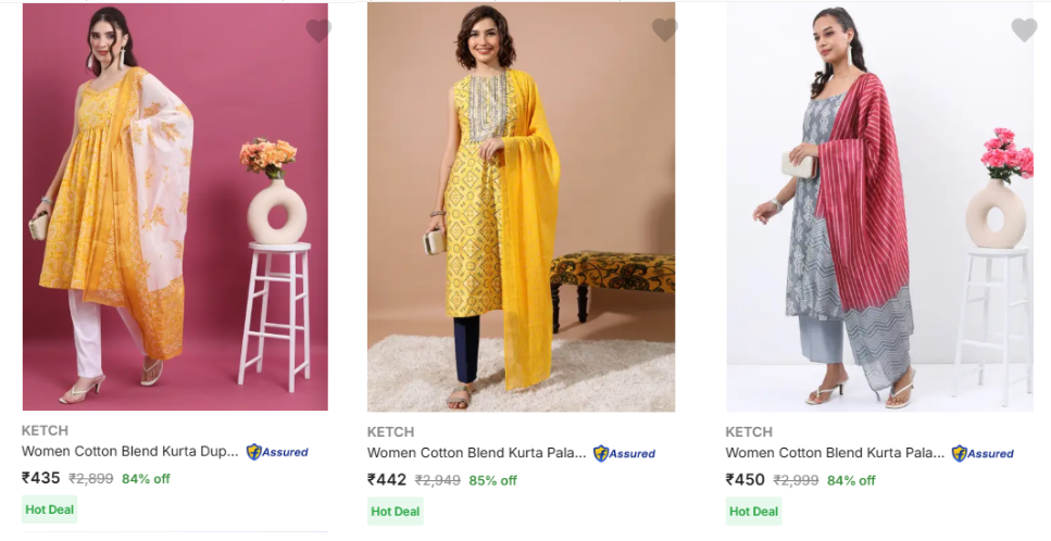 Ketch Women's Ethnic Sets upto 85% Discount is available on Flipkart.