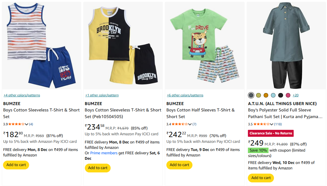 Cutiekins Boys Kurta Sets Starting @ ₹155