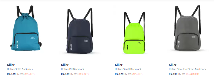 Killer Backpacks Starting @ ₹179 on Myntra.