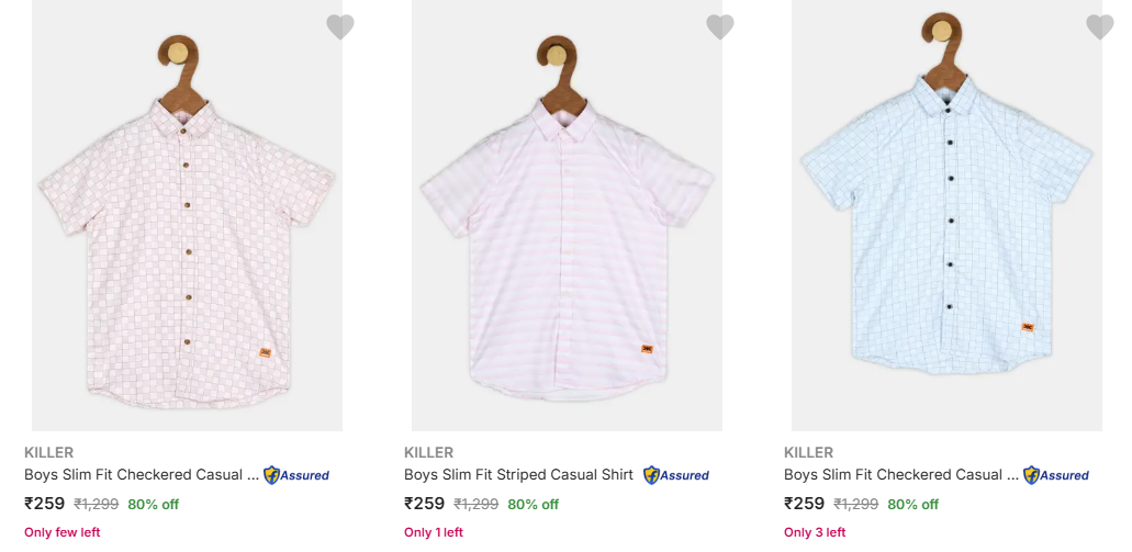 Killer Kids' Shirts upto 80% Discount is available on Flipkart.