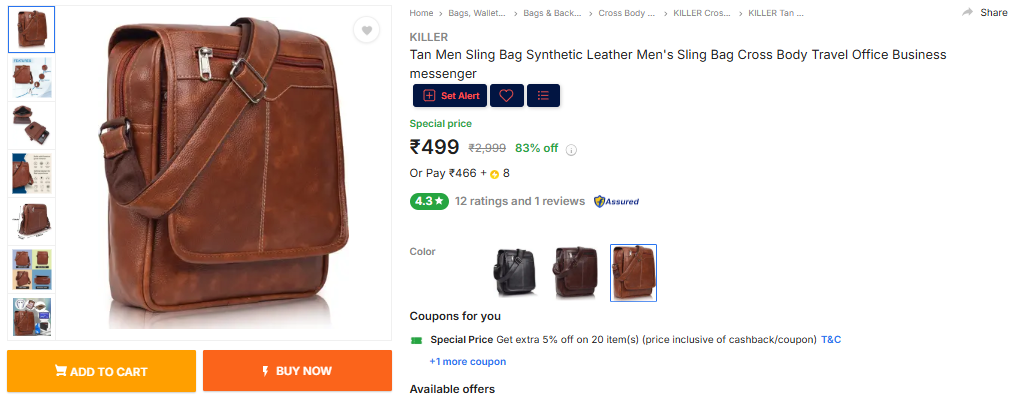 KILLER Tan Men Sling Bag Synthetic Leather Mens Sling Bag Cross Body Travel Office Business messenger.