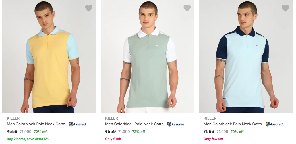 Killer Men's T-Shirts upto 72% Discount is available on Flipkart.