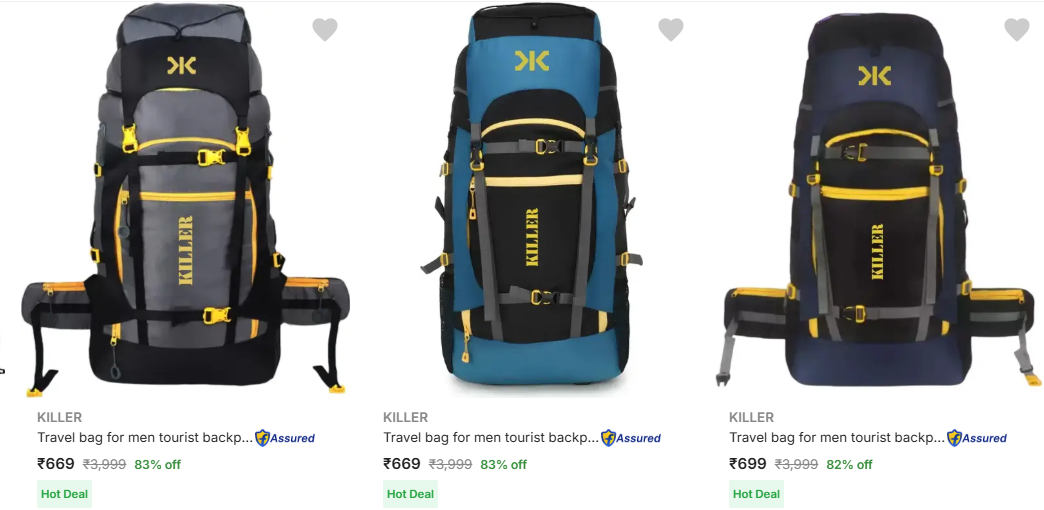 Killer Rucksacks Upto 83% Discount | Starting @ ₹669 on Flipkart.