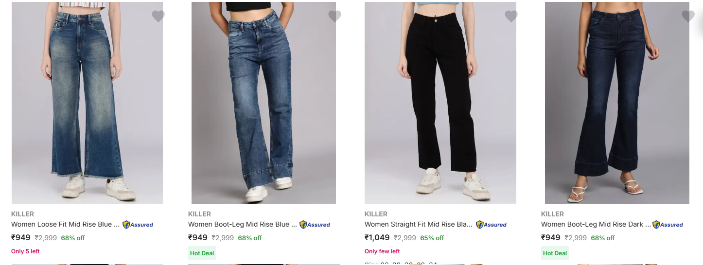 Killer Women's Jeans upto 68% Discount is available on Flipkart.