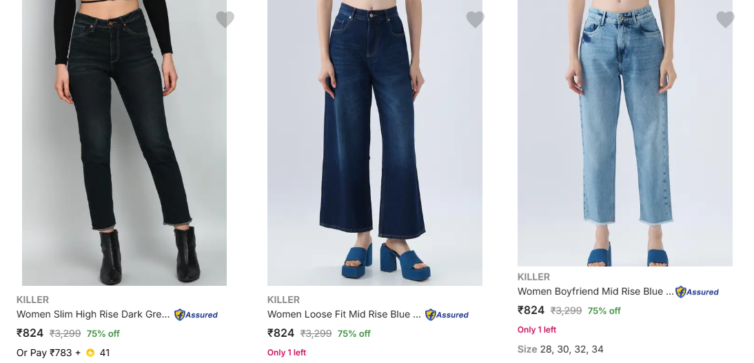 Killer Women's Jeans upto 75% Discount is available on Flipkart.