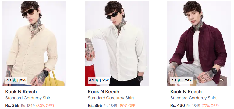 Kook N Keech Men's shirts @ upto 90% Discount