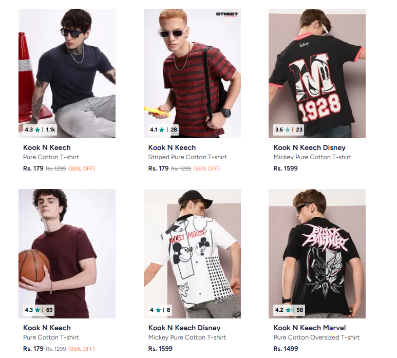 Kook N Keech Men's T-shirts Starting at ₹179