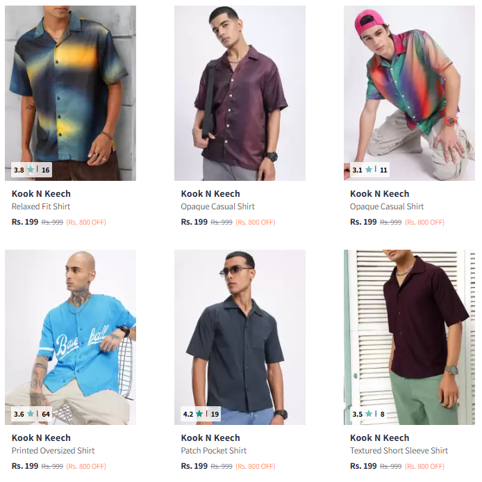 Kook N Keech Brand Men's Shirt @ Flat ₹199, Available on Myntra.
