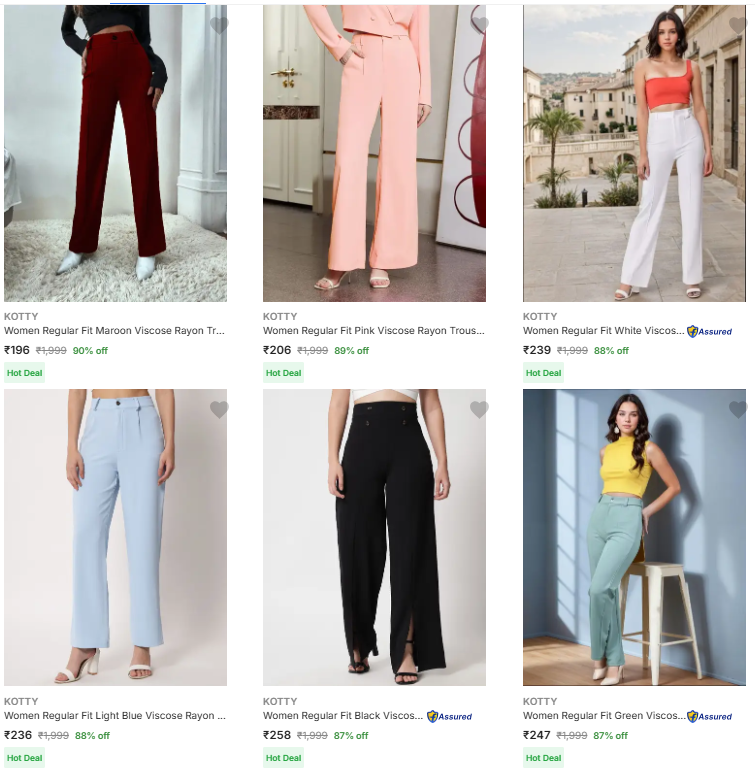 Kotty Women's Trousers @ Starting ₹196, Available on Flipkart.