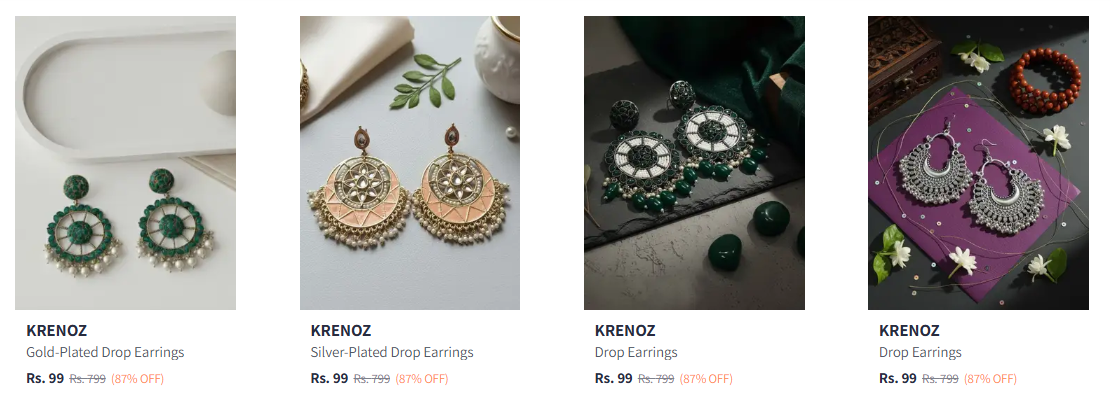 Krenoz Earrings Starting at ₹99 is available on Myntra.
