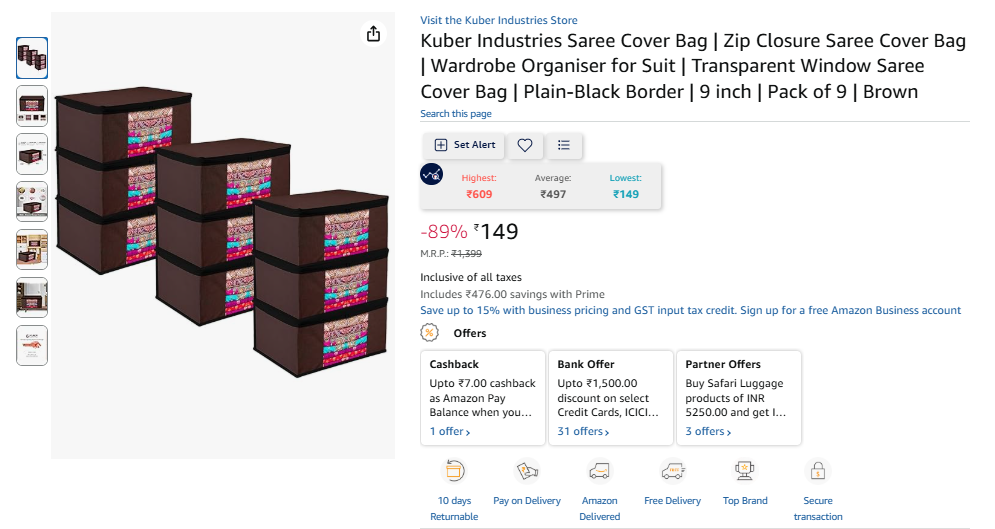 Kuber Industries Saree Cover Bag | Zip Closure Saree Cover Bag | Wardrobe Organiser for Suit | Transparent Window Saree Cover Bag | Plain-Black Border | 9 inch | Pack of 9 | Brown