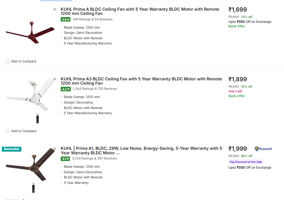 Kuhl Fans Upto 70% Discount | Starting @ ₹1699 on Flipkart.