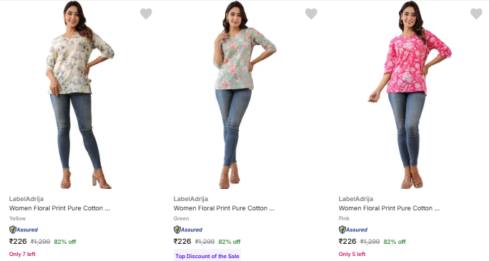 Labeladrija Women's Kurtas at minimum 77% Discount available online in India (77% discount from MRP) on Flipkart. Discount: 77%. This deal was updated by @nirali on 11th October, 2025 at 3:12 PM.