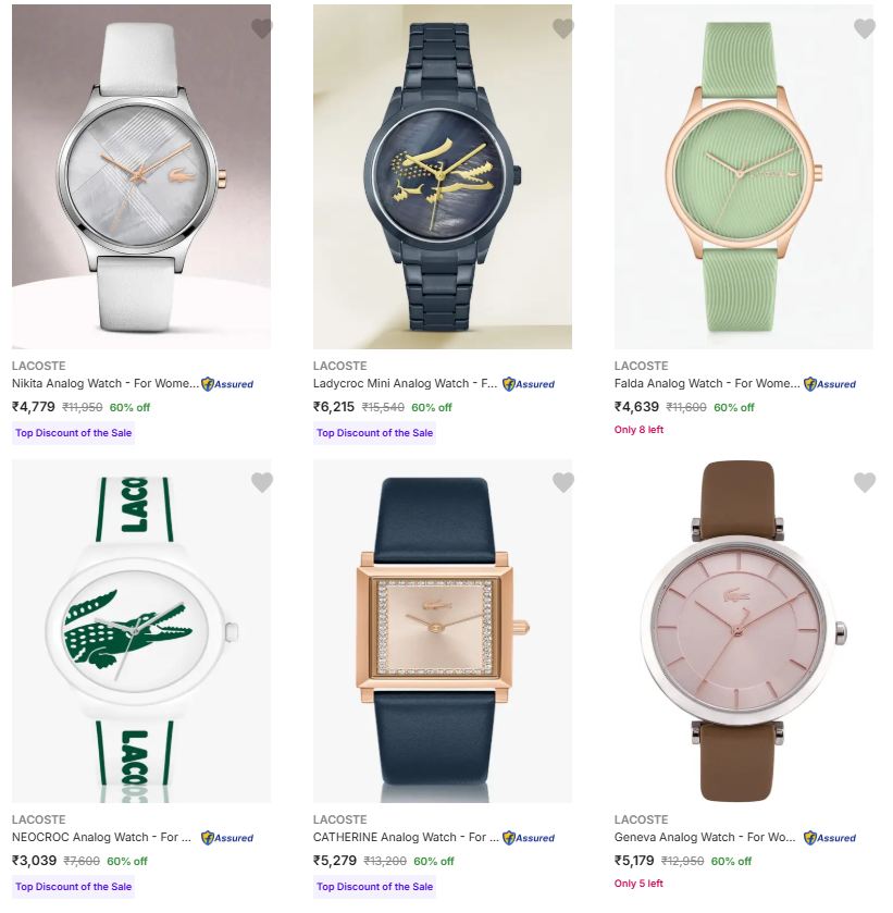 Lacoste Women Analog Watches @ Flat 60% Discount, Available on Flipkart.