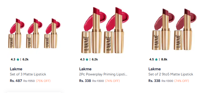 Lakme Set of 3 Matte Lipstick up to 75% Discount