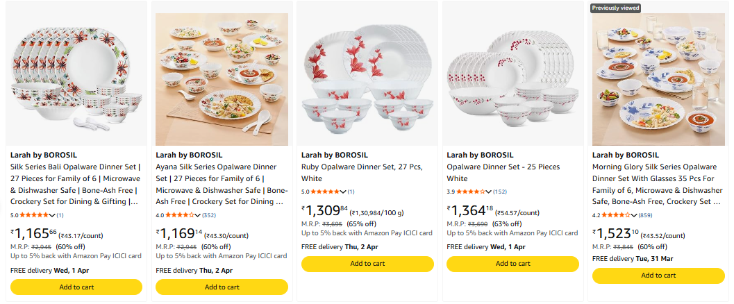 Larah by Borosil Dinner Set @ Minimum 60% Discount, Available on Amazon.
