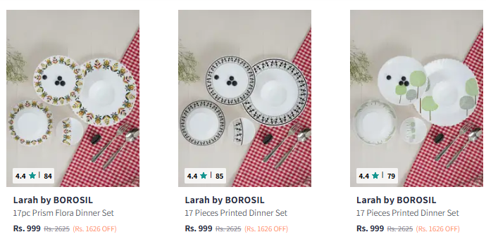 Larah by Borosil Pentas Opalware Dinner Set, 28 Pcs, White