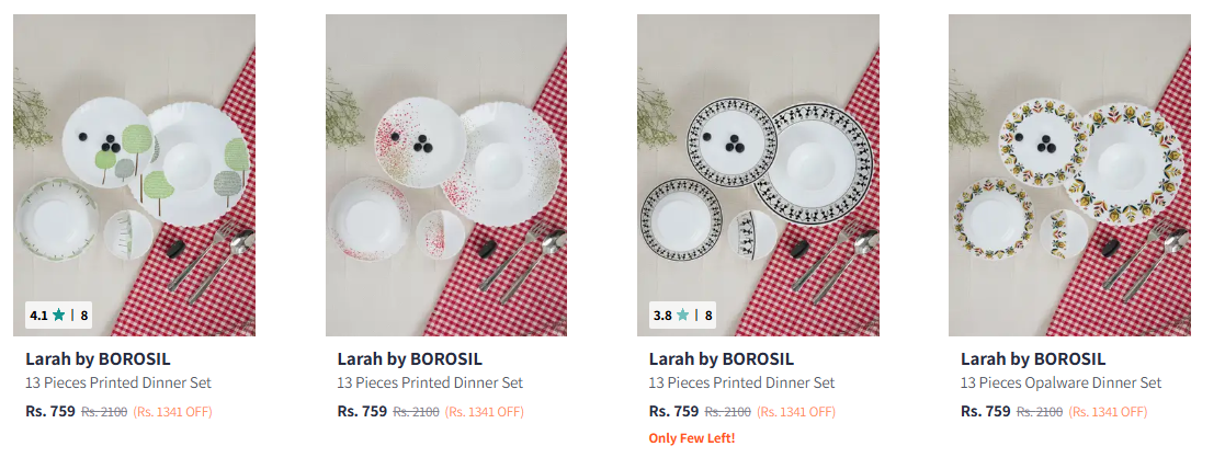 Larah by BOROSIL Dinner Set at minimum 60% Discount is available on Myntra.