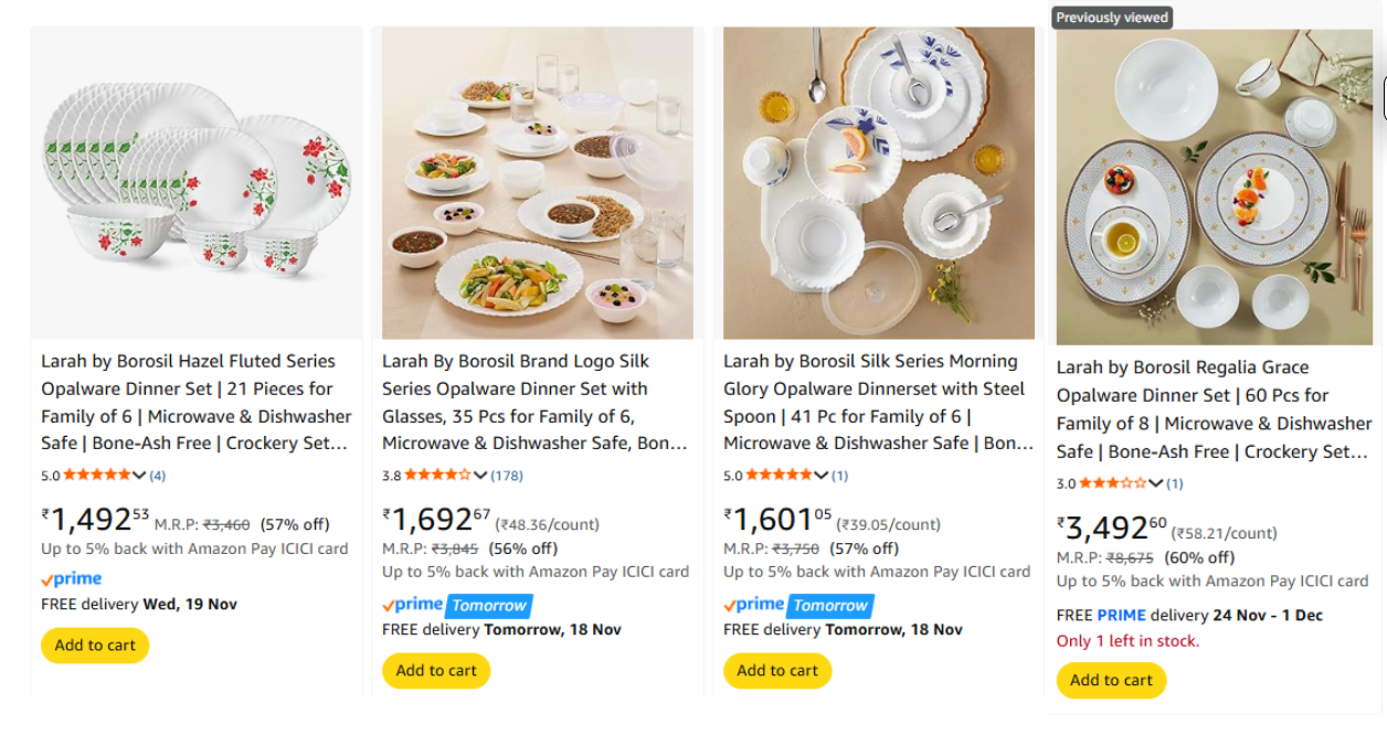 Larah by BOROSIL Dinner Set upto 60% Discount is available on Amazon.