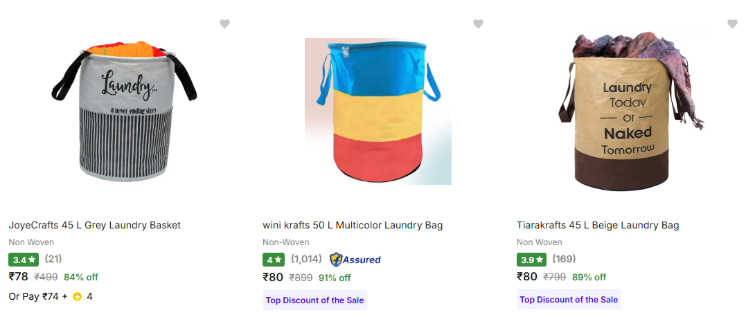 Laundry Baskets starting at ₹78 is available on Flipkart.