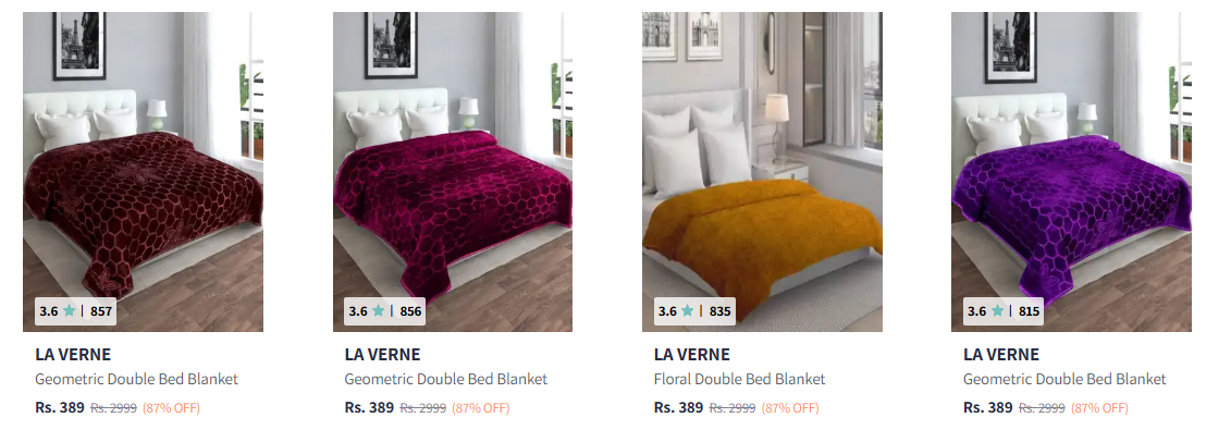 La Verne Blankets upto 87% Discount is available on Myntra.