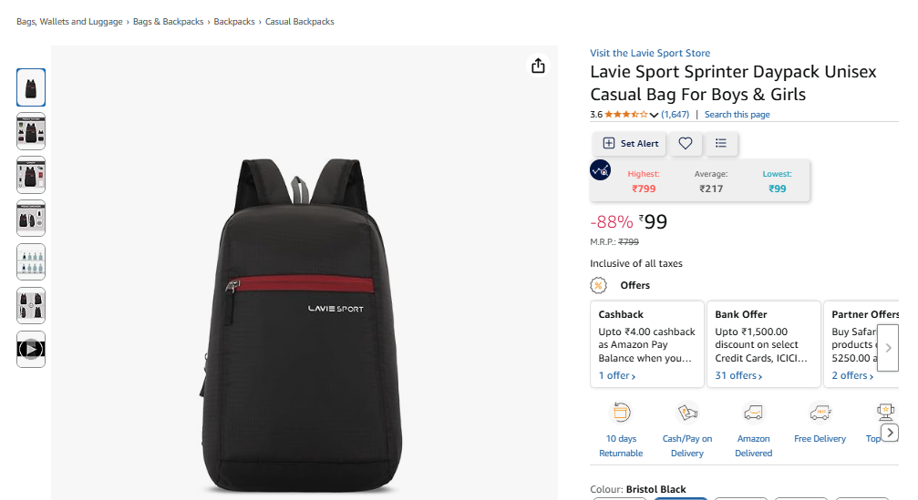 Lavie Sport Sprinter 11 litres Daypack | 1.5 Compartment Unisex Casual Backpack for Boys & Girls (Pack of 3)
