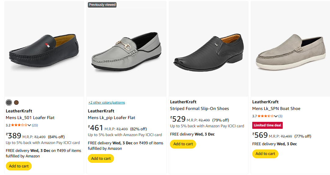 LeatherKraft Men's Shoes upto 84% Discount is available on Amazon.