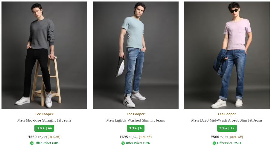 LEE COOPER Men's Jeans @ Up to 80% Discount, Available on Ajio.