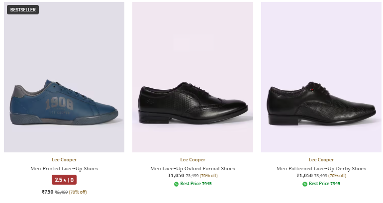 Lee Cooper Shoes @ Flat 70% Discount, Available on Ajio.