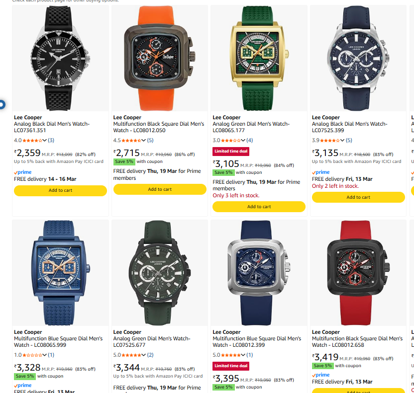 Lee Cooper Watches Upto 86% Discount