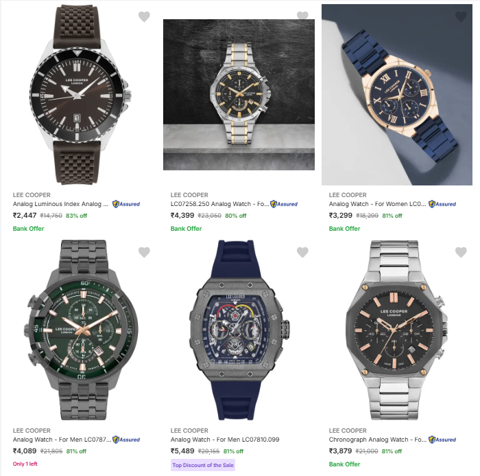Lee Cooper Wrist Watches @ Minimum 80% Discount, Available on Flipkart.