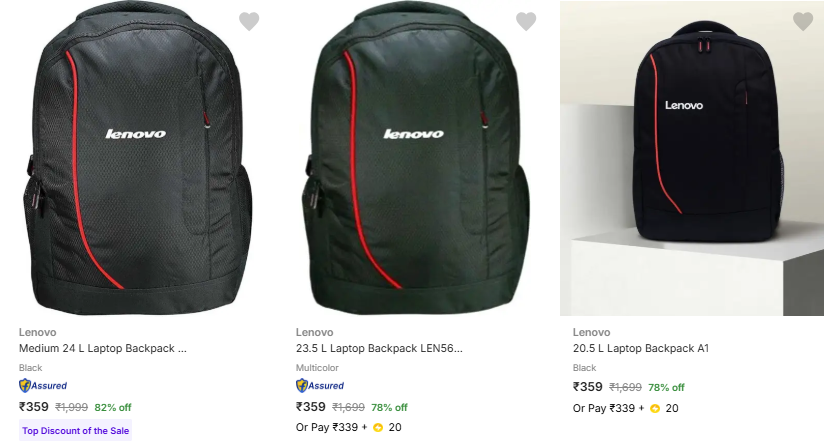 Lenovo Laptop Bags Upto 82% Discount | Starting @₹359 on Flipkart.