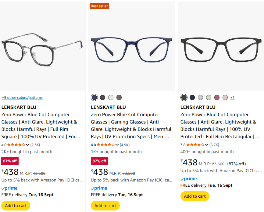 LENSKART BLU Computer Glasses Upto 87% Discount on Amazon.