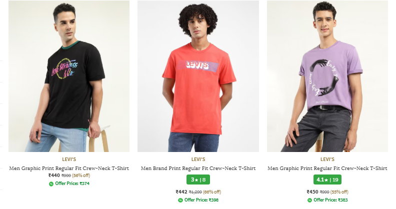 levi's men Fashion T-shirts Minimum 50% Discount is Available on Ajio