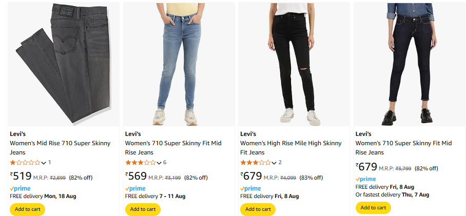 Levi's Women Fashion Jeans Minimum 80% Discount