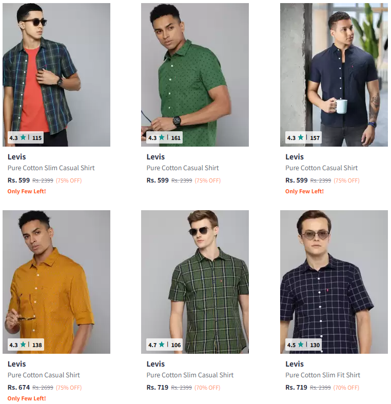 Levis Brand Men's Shirts @ Flat 75% Discount, Available on Myntra.